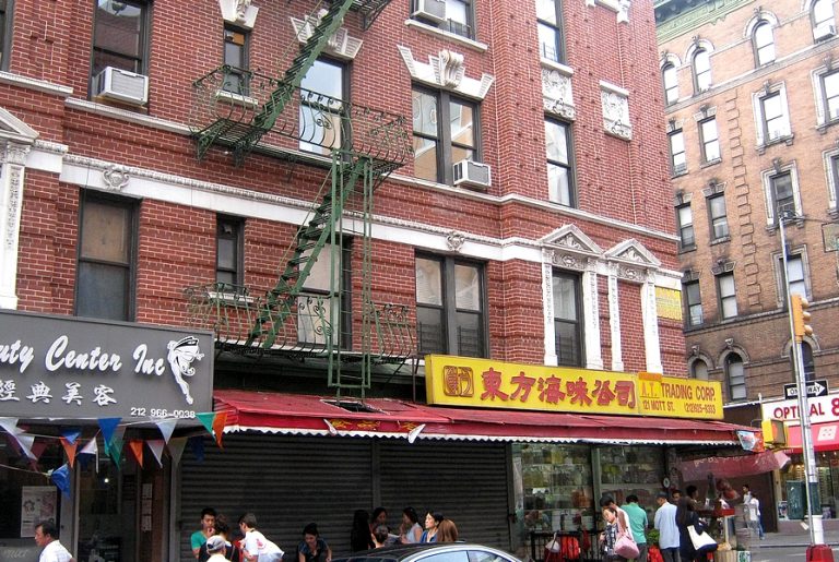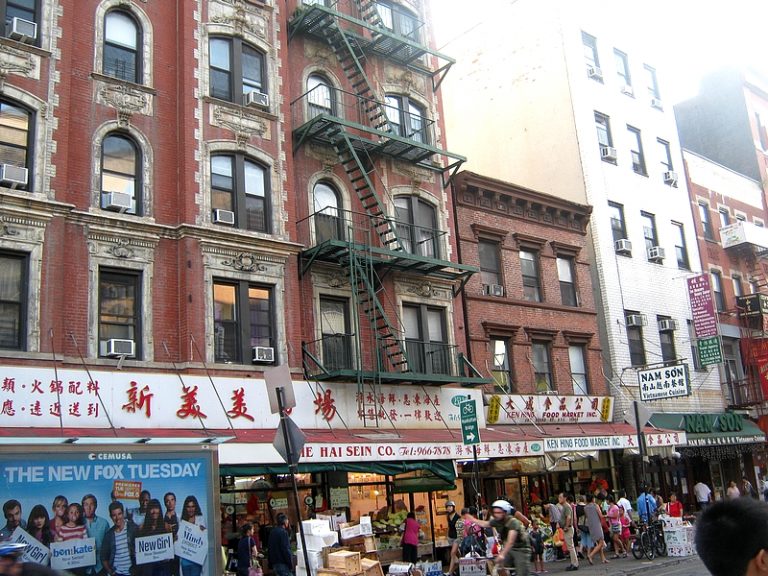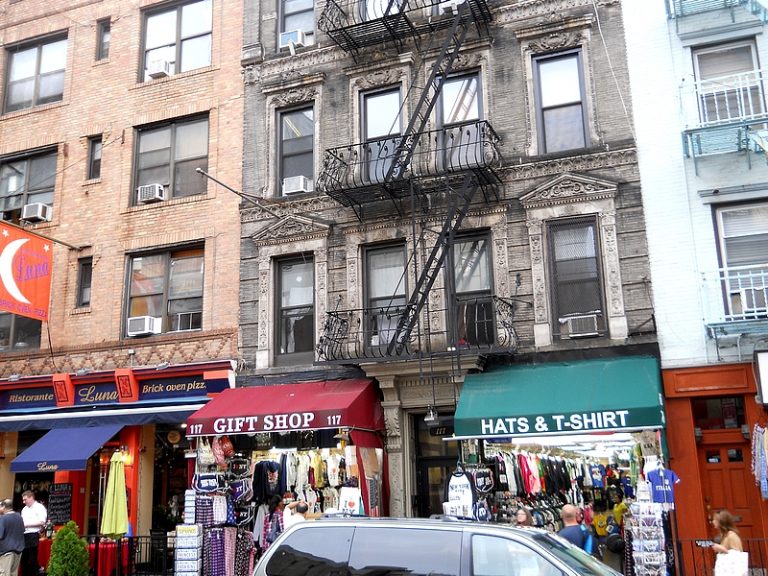 Au dessus des boutiques des immeubles et leurs escaliers de secours.