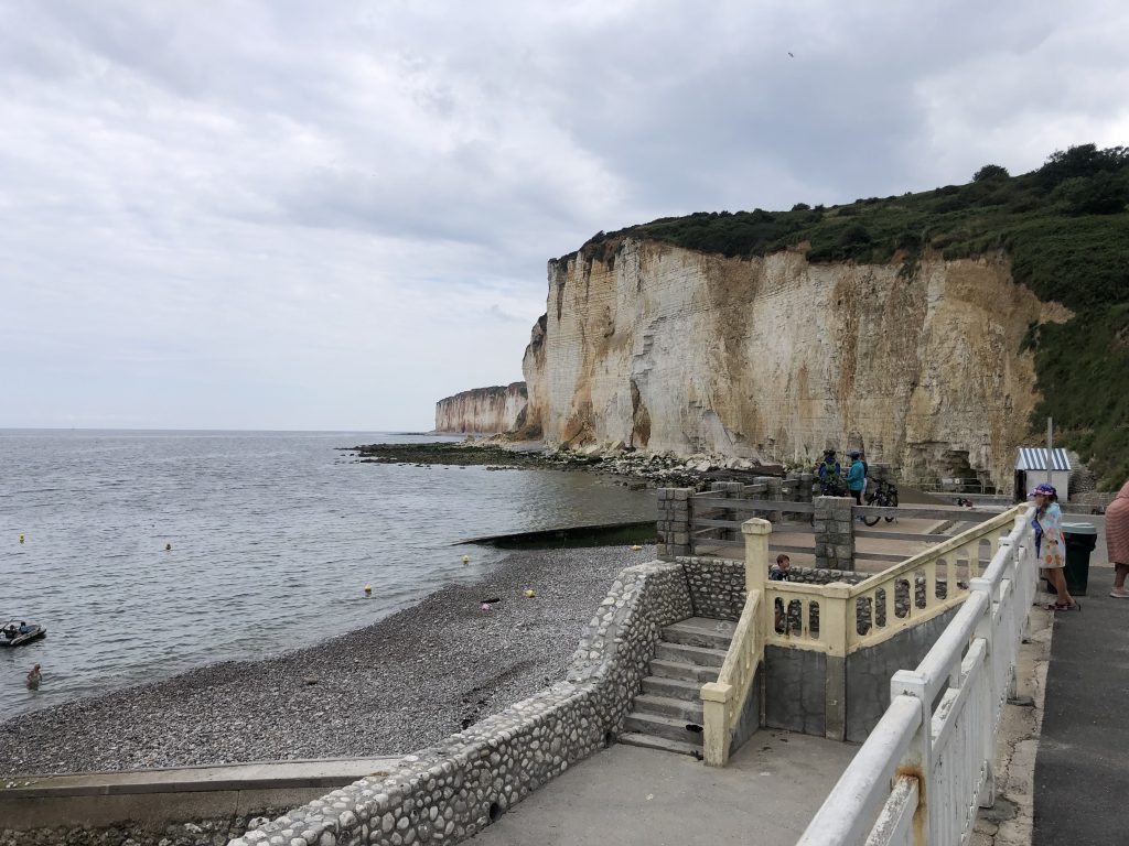 On continue la route vers Dieppe et on s’arrête à Veulette sur mer. Le coin est sympathique, on déjeune de moules frites sur le front de mer.