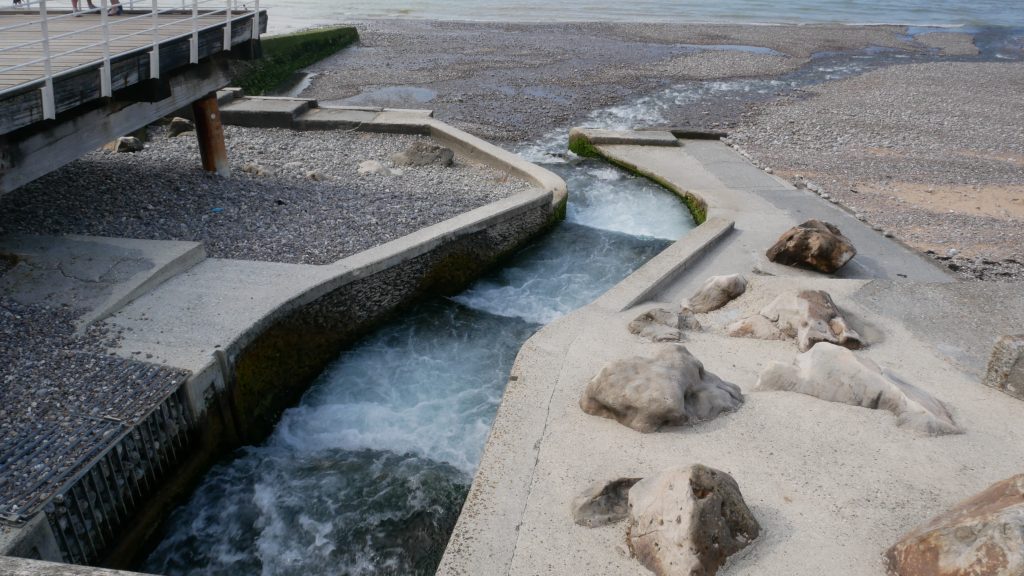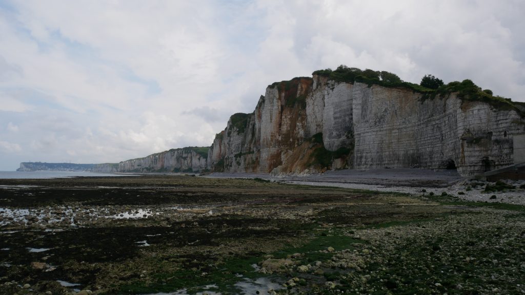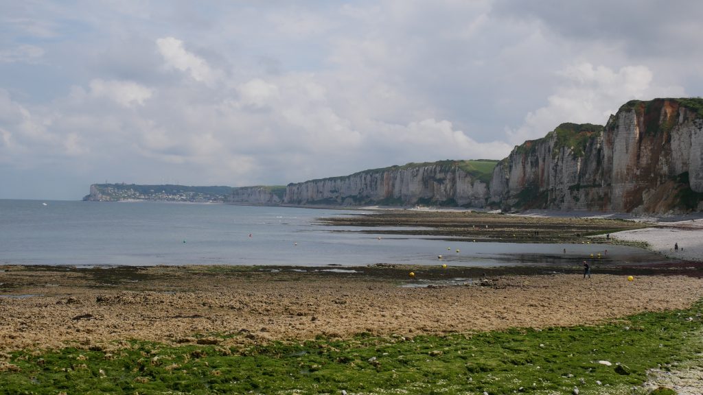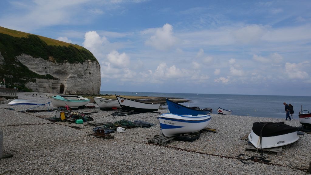 Après Saint-Valéry en Caux, on s’arrête 2 nuits au camping les mouettes en hauteur au-dessus de Veules les roses. Ici s’écoule le plus petit fleuve de France, un peu plus d’un kilomètre entre sa source et l’endroit où il se jette dans la mer. Mais c’est bien là qu’il se jette, d’où son nom de fleuve ! C’est une charmante station balnéaire avec un front de mer et un ponton en bois qui paraît-il à la forme de celui du paquebot Normandie.