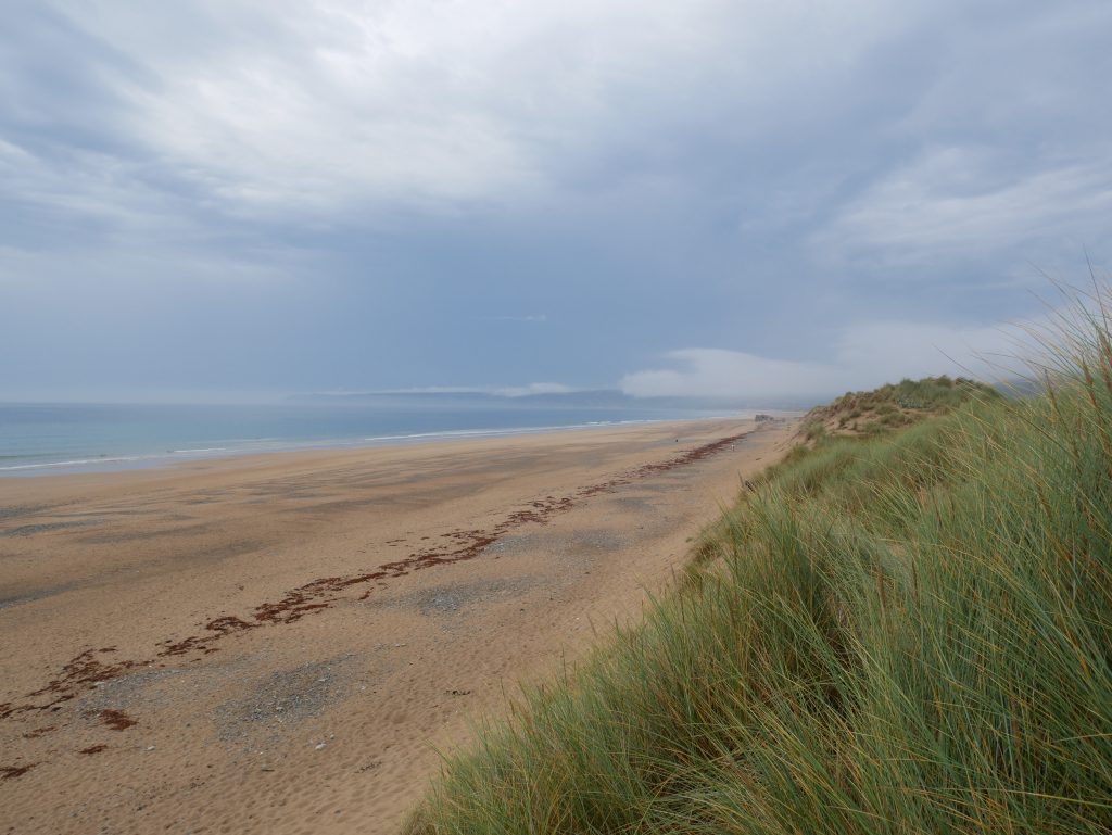 Les dunes de Biville sont un paysage étonnant. Ce sont des dunes de sables qui vont jud-squ’à la mer mais elles sont recouvertes de végétation. Il semble qu’il y ait aussi toute une faune qui s’y soit installée. On franchit la dune pour trouver à nouveau une immense plage avec des blockhaus effondrés.