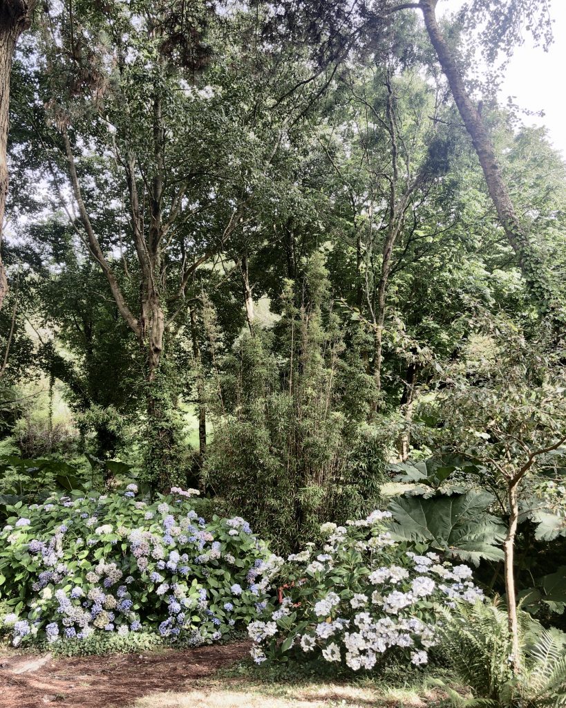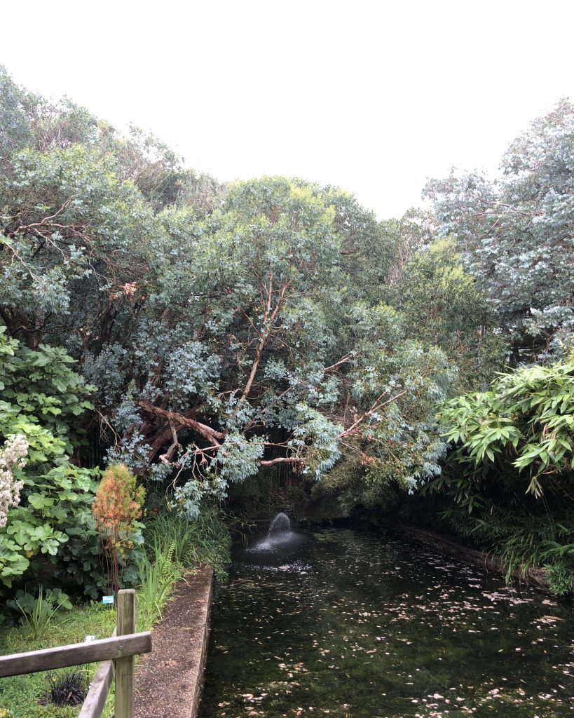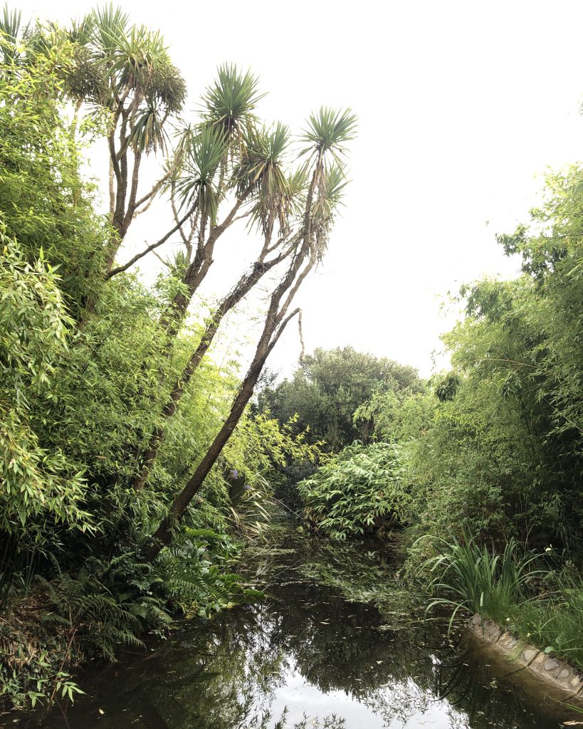 Dans cette partie du Cotentin, la végétation est vraiment luxuriante. On y trouve partout des yukas, des palmiers et des agapanthes. Le jardin botanique de Vauville n’est pas un grand jardin mais il est très bien agencé avec pleins d’ambiance différentes. On y trouve des cyprès mais aussi des palmeraies. Le jardin abrite une belle collection d’eucalyptus, certains doivent être anciens, ils sont bien taillés. Le jardin a aussi des hydrangeas et des bassins avec des gugneras.