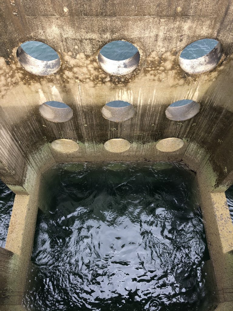 En arrivant vers Flamanville, on ne peut pas louper les énormes pylônes électriques prêts à recevoir toutes cette électricité promise… Diélette est un petit port à partir duquel on a une vue imprenable sur la centrale de Flamanville. On se promène sur la jetée, un vraie brise-lames. Il doit y avoir de la houle par ici.