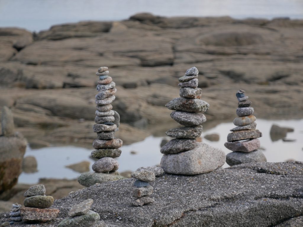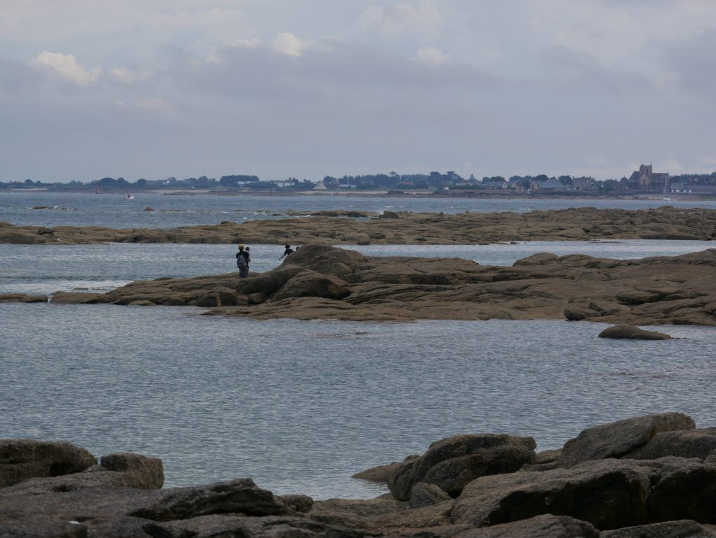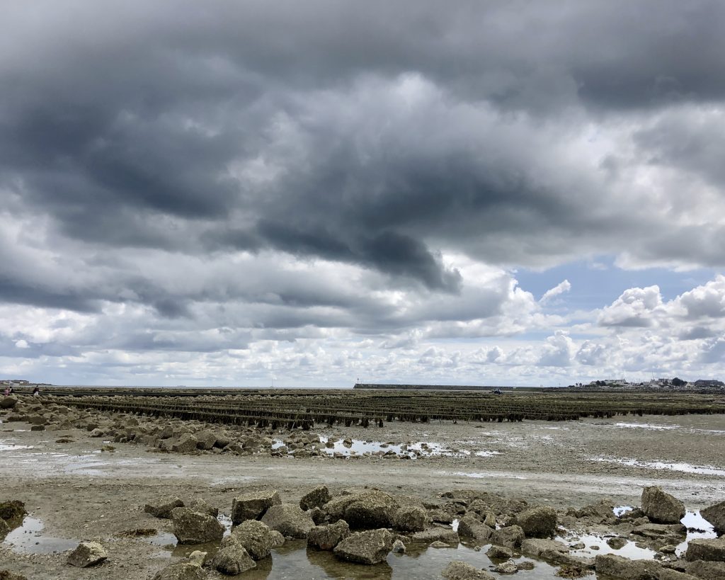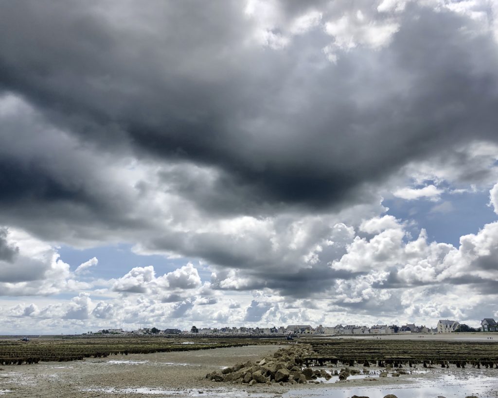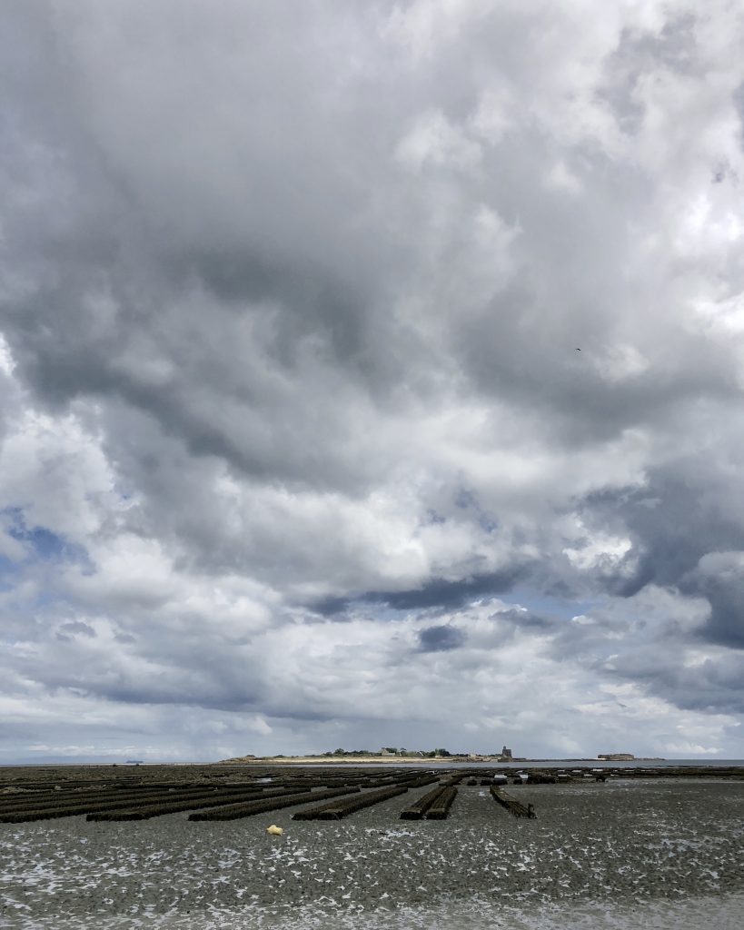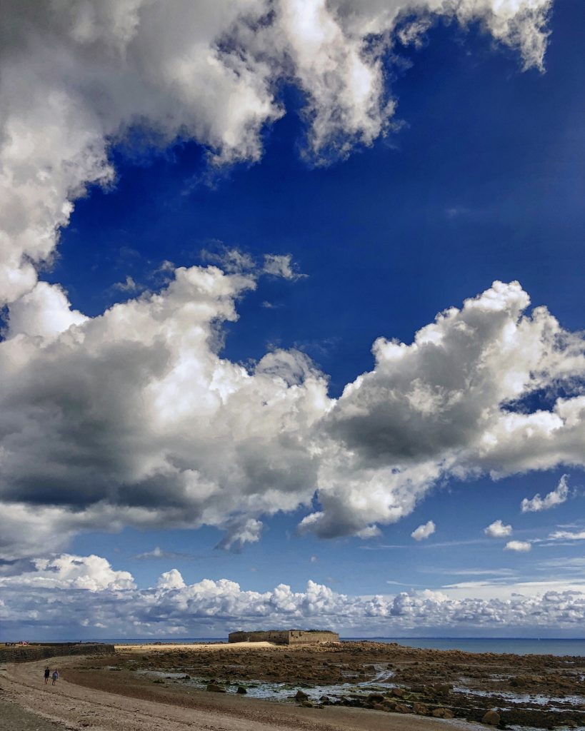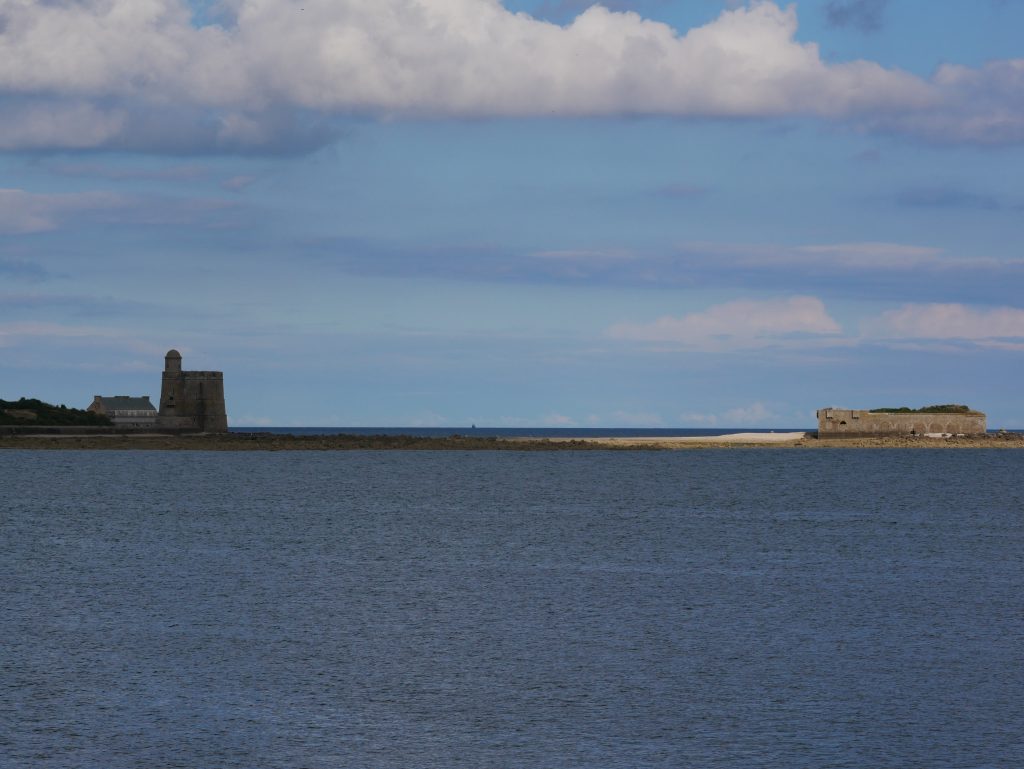 Direction Saint-Vaast la Hougue pour accéder à l’ile de Tatihou. Le nom est exotique. L’ile est accessible à marée basse. On se renseigne en arrivant : aujourd’hui la mare permet de rejoindre l’ile entre 15h et 17h20. Parfait, cela nous permet de manger au restaurant, de faire une petite sieste dans le camion et de se mettre en route. On peut aussi prendre un bateau amphibie qui emmène les passants soit par la baie sur roues soit par la mer. En passant par la plage, il y a un gué d’environ 3kms qui rejoint l’ile. Il faut traverser l’étendue des parcs à huitres dans les cailloux et la vase. Au milieu, c’est un peu délicat et nous préférons enlever chaussures et chaussettes pour traverser car l’eau recouvre les chevilles des marcheurs. Une fois sur l’ile, nous nous dirigeons vers le fort Vauban, chargé d’histoire sur plusieurs siècles. Des casemates de la deuxième guerre mondiale permettent d’imaginer comment les Allemands surveillaient les côtes. L’ile est également une réserve ornithologique et une site d’observation de l’estran et du milieu marin. On termine par le Lazaret qui était un endroit pour mettre en quarantaine marins et équipages à des époques ou la peste, le choléra ou les fièvres jaunes arrivaient par la mer. Une drôle de résonnance avec l’actualité de 2020…