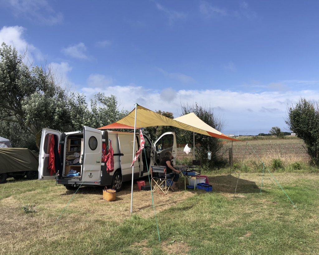 Nous passons sur la côte est du Cotentin. On nous a conseillé un camping à la ferme à Gatteville le Phare. L’endroit est plus rustique que les campings précédents mais l’accueil est sympa et c’est un camping « les pieds dans l’eau ». En quête de nourriture, nous trouvons une boucherie charcuterie à Montfarville qui fait des grillades au feu de bois. L’enseigne regorge de médailles et de prix. C’est de l’authentique ! Nous apprendrons plus tard que c’est une tradition des bouchers ici de faire des grillades au feu de bois le dimanche. On se régale.