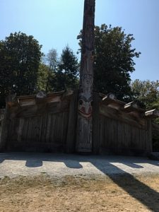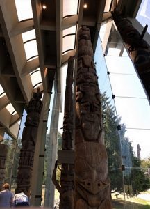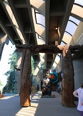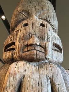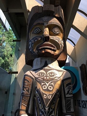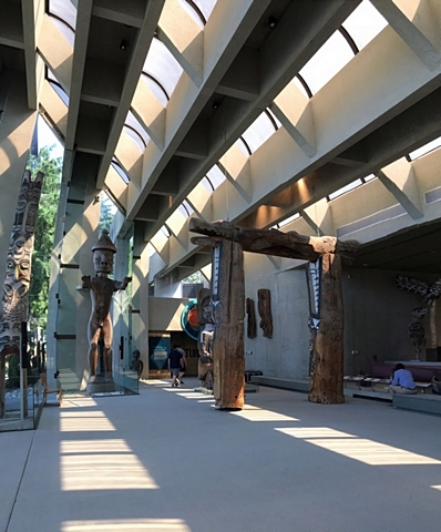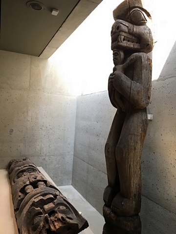J’avais déjà vu ce musée il y a trente ans. Il est consacré aux peuples premiers, « first nations » et abrite une grande collection d’objets et d’art indien, provenant en grande partie des tribus locales. Des totems bien sûr mais aussi des canoés, des paniers, des vêtements, des masques, des cuillères… On y voit beaucoup de corbeaux. Il y a également de l’art indien moderne. Ce musée expose aussi des objets de peuples primitifs du reste du monde.