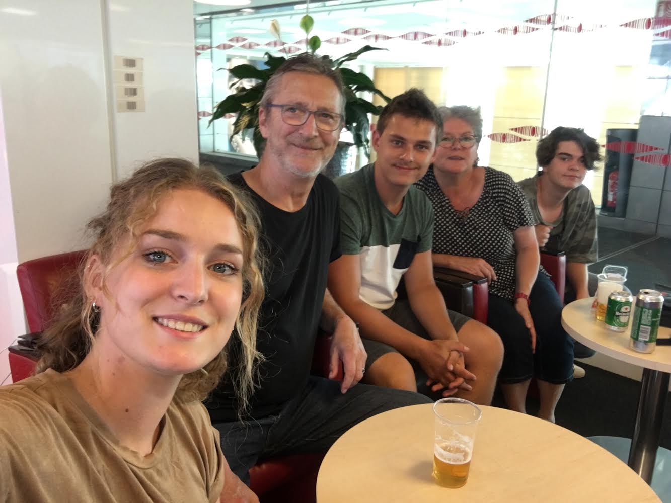 Arrivée vers 13H40 à Roissy. Enregistrement des bagages. On retrouve Louise et Loïs. Ouf ! On souffle.
