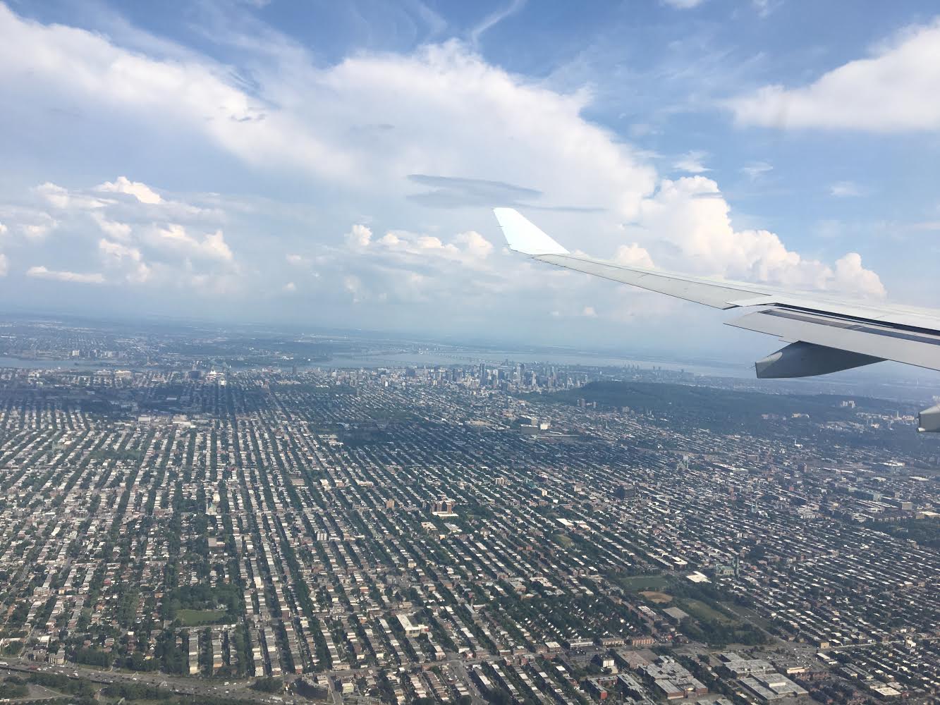 On part à 15h10. 7h30 de vol environ. Avec le décalage horaire (-6h), on arrive à Montréal vers 17h. On a eu un repas chaud et une collation dans l’avion, on ne sait pas bien si on a faim ou pas, si c’est l’heure de manger ou pas. On n’a pas le temps de se poser trop de questions car on n’a qu’une heure de transit.