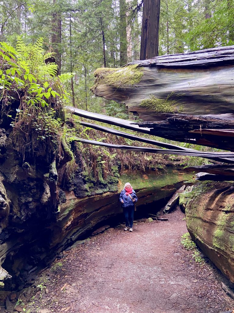 En dessous, c’est humide et très vert avec de nombreuses fougères. Certains arbres sont tombés. On peut longer l’un d’eux sur 110 mètres ! Le diamètre doit faire 4 ou 5 mètres. On se sent vraiment tout petit à côté.