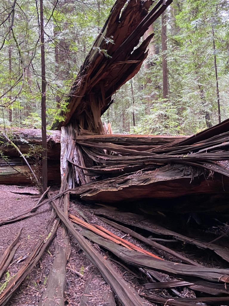 Certains arbres sont creux. Certains sont même brûlés mais toujours vivants. Il parait que ces arbres ont besoin du feu pour faire éclater leurs pommes de pin et faire tomber leurs graines pour se renouveller.