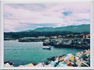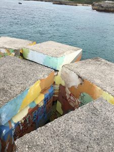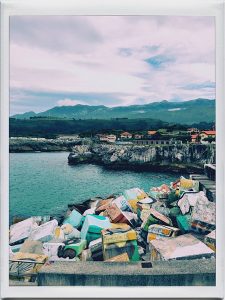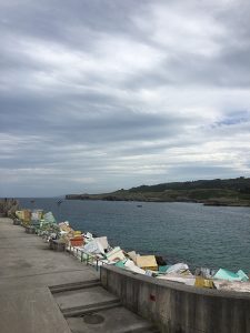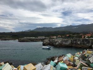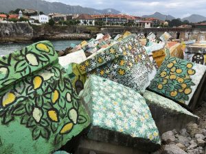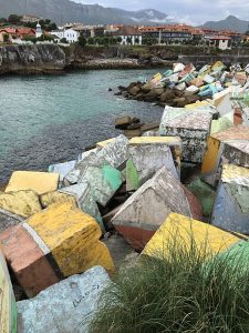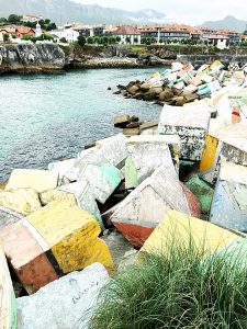 Llanes est un port dont la spécialité semble être le ramassage d’algues à des fins pharmaceutiques. Un défilé de petites embarcations vient décharger des ballots d’algues frisées. Un grand brise lames fait de blocs de béton protège la jetée. Ses blocs ont été peints par des artistes : du street art de bord de mer !