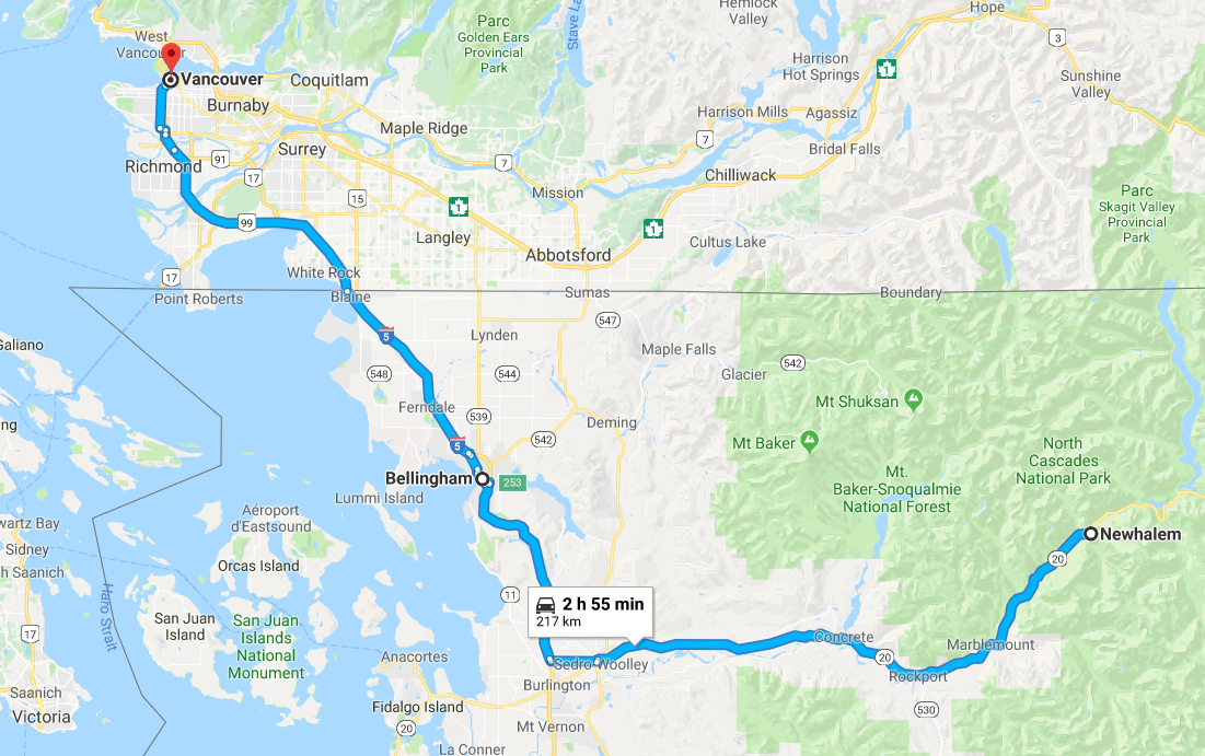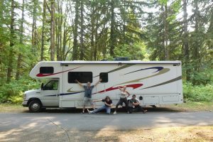 On regarde la carte, il y a des campings dans Vancouver, pas trop loin de Canadream. On en surligne plusieurs. Dans le premier « Peace Arch RV Park », il y a de la place. 55$ la nuit en « full service ». Nous arrivons vers 17h. C’est un camping de luxe, où tous les camping-cars sont garés en épis mais il y a une piscine et du WIFI. On profite de la piscine mais il y a les valises à faire. Nous sommes à 30 min de Canadream, c’est parfait pour demain matin.