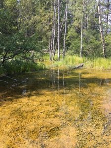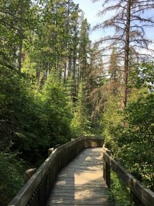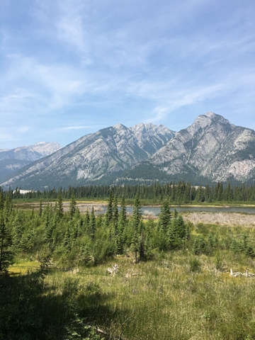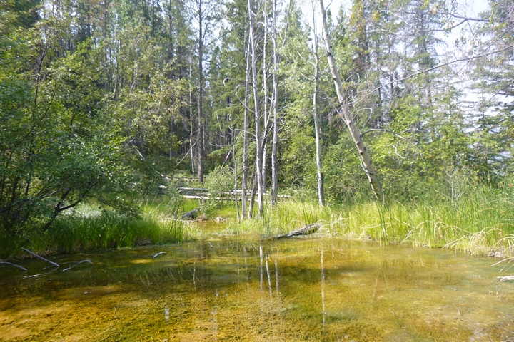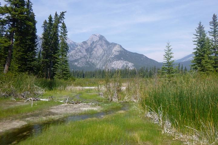 Les sources chaudes de Banff forment une sorte de marais au-dessus duquel on se promène sur des chemins de bois. Il est interdit d’y mettre la main pour protéger la faune et la flore qui vivent dans ce marécage chaud. Le site n’a rien d’exceptionnel, c’est son histoire qui est intéressante. C’est parce que deux familles revendiquaient l’exploitation des eaux thermales qu’est né le premier parc national au Canada, celui de Banff.