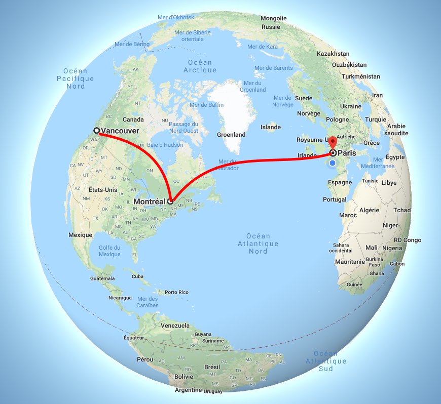 A l’aller, on remontait le temps, ce qui a fait qu’on est partis d’Angers un matin et qu’avec le décalage, on est arrivés le soir du même jour. Au retour, il faut ajouter le décalage à notre temps de voyage. En partant vendredi soir, on ne sera pas chez nous avant dimanche midi.