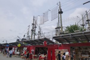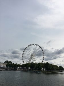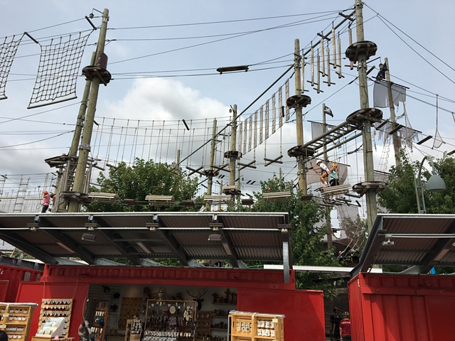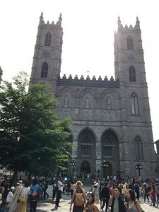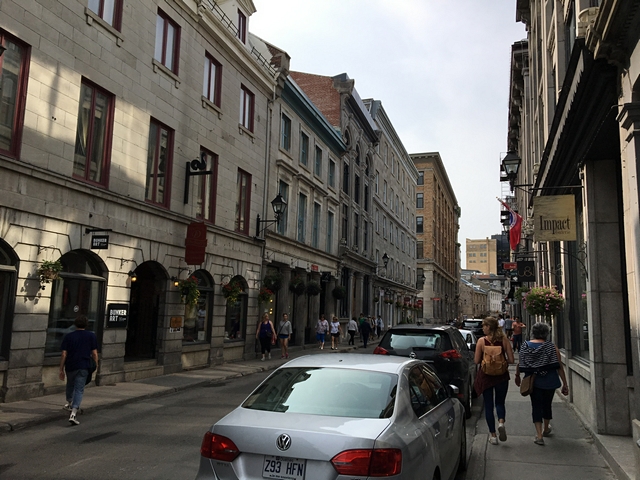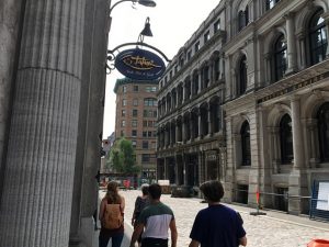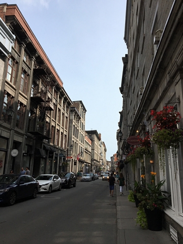 Il y a des bâtiments anciens, en pierre et bien rénovés. Rien à voir avec Vancouver, ici c’est 4 siècles d’histoire. On déambule sur le vieux port. De là des croisières remontent le fleuve Saint Laurent pour aller voir des baleines. Il y a des attractions, une grande roue mais aussi une tyrolienne géante, un labyrinthe et un accrobranche dans un bateau de pirates. On retourne dans les vieux quartiers qui sont beaucoup plus animés maintenant, des boutiques, des restaurants, des galeries d’art… Place Jacques Cartier, il est midi. On déjeune en terrasse. Les garçons se régaleront d’une vraie poutine.