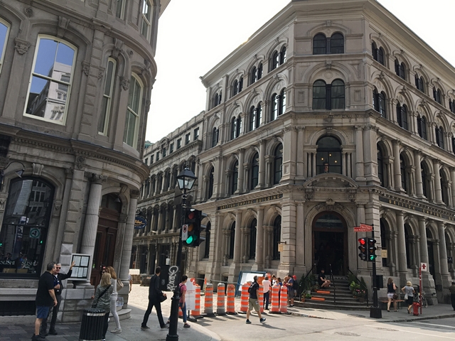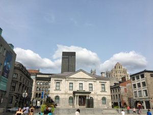 En plus, il se trouve qu’on a près de 12h de transit à Montréal. On se prend un petit déjeuner à l’aéroport, on laisse nos sacs à dos à la consigne et c’est parti pour un tour dans le vieux Montréal. Le bus 747 nous emmène en 30 minutes à la station de métro Lionel Groulx et de là, on va jusqu’à la place d’Armes. Il est à peine 9h30 quand nous débarquons, assez fatigués. Le quartier n’est pas encore réveillé et le charme ne fonctionne pas encore.