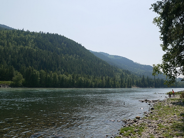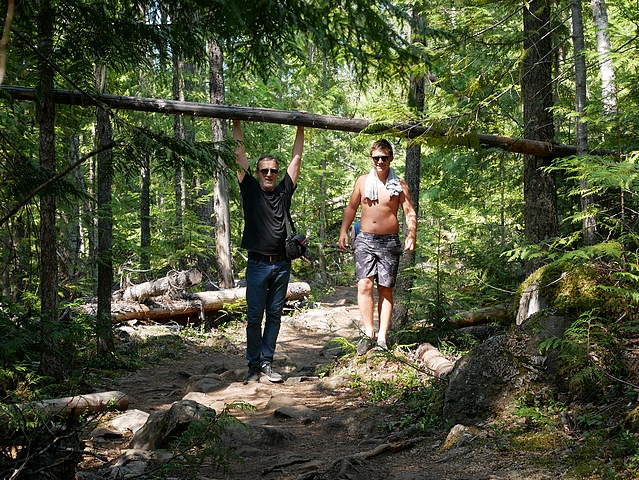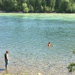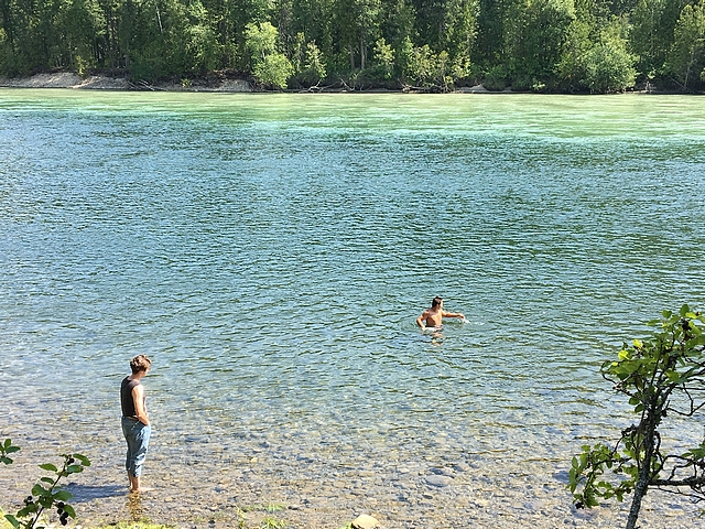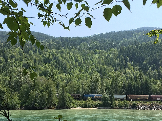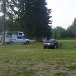 20 kms avant Kamloops, on annonce un camping au bord d’un lac, le lac Lejeune. On tente. Endroit magnifique, grands emplacements, lac avec ponton. Malheureusement, tout est complet. On reprend la route, déçus. Nous arrivons à Kamloops vers 21h. Premier camping : complet. L’accueil est fermé. Il est écrit qu’il reste quelques emplacements pour du « tenting ». C’est vraiment petit. En marche arrière et en biais, on devrait passer. Super manœuvre Steph !