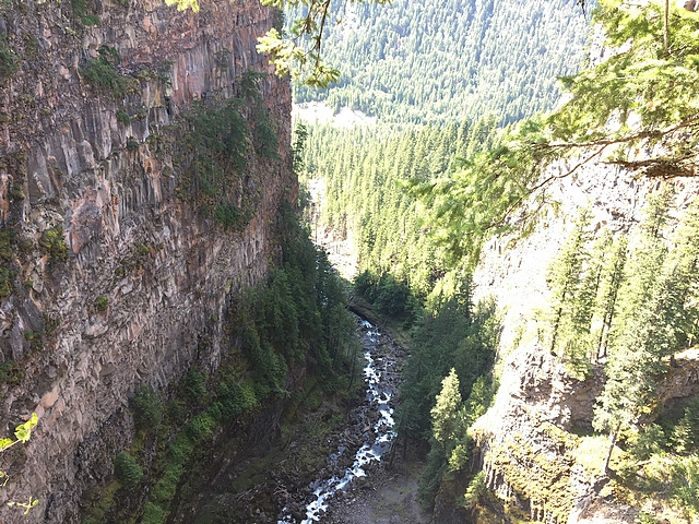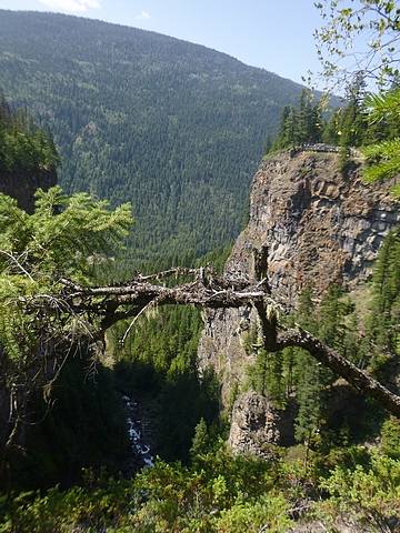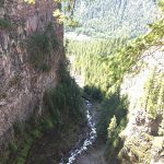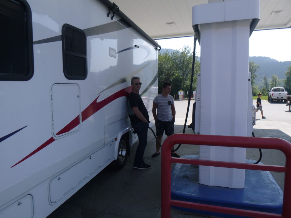 Après Chilliwalk, le paysage change. On n’est plus en agglomération. On commence à apercevoir des sommets. On monte doucement. On arrive sur une sorte de plateau. Les panneaux nous informent qu’on est sur des routes de montagne avec des conditions climatiques qui peuvent être extrêmes. On fait le plein d’essence à Merritt. Le camping car consomme 20l/100 ! Mais il a un réservoir de 200 litres.