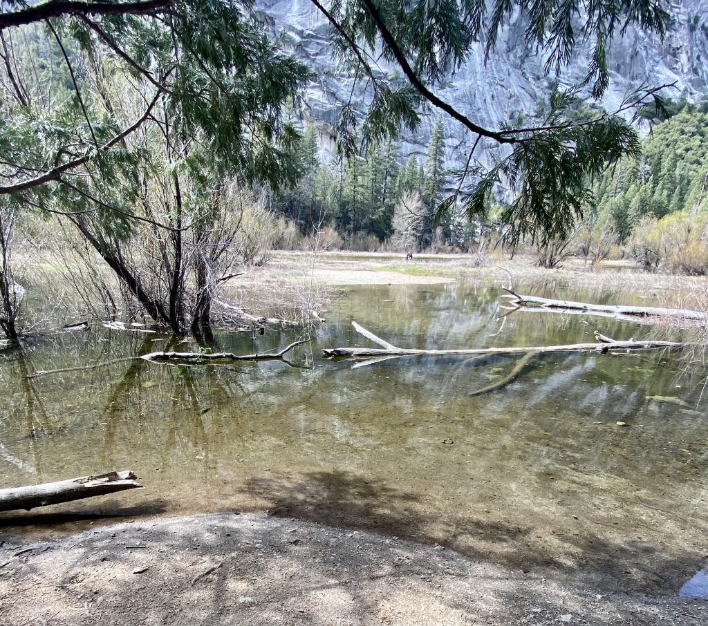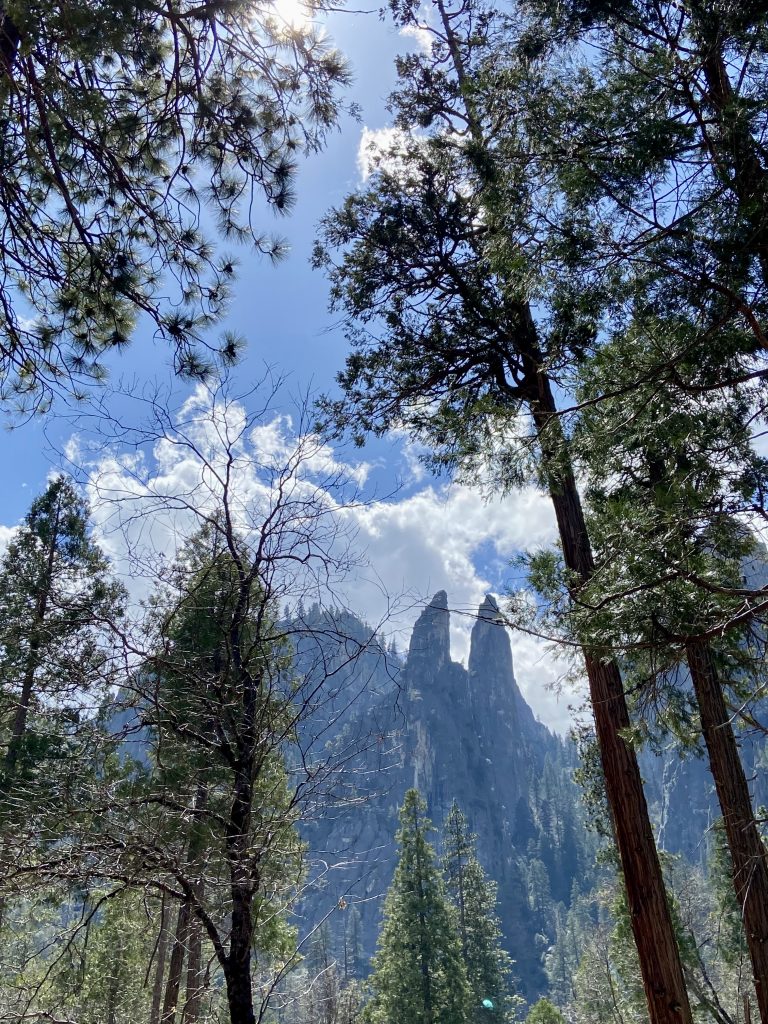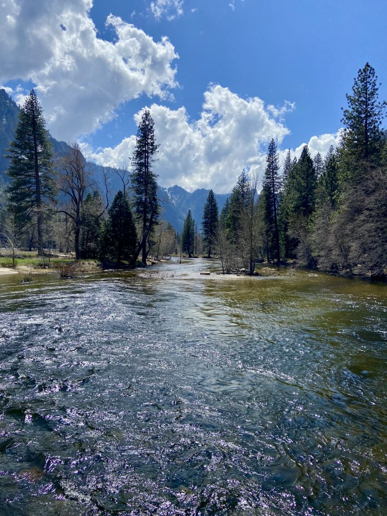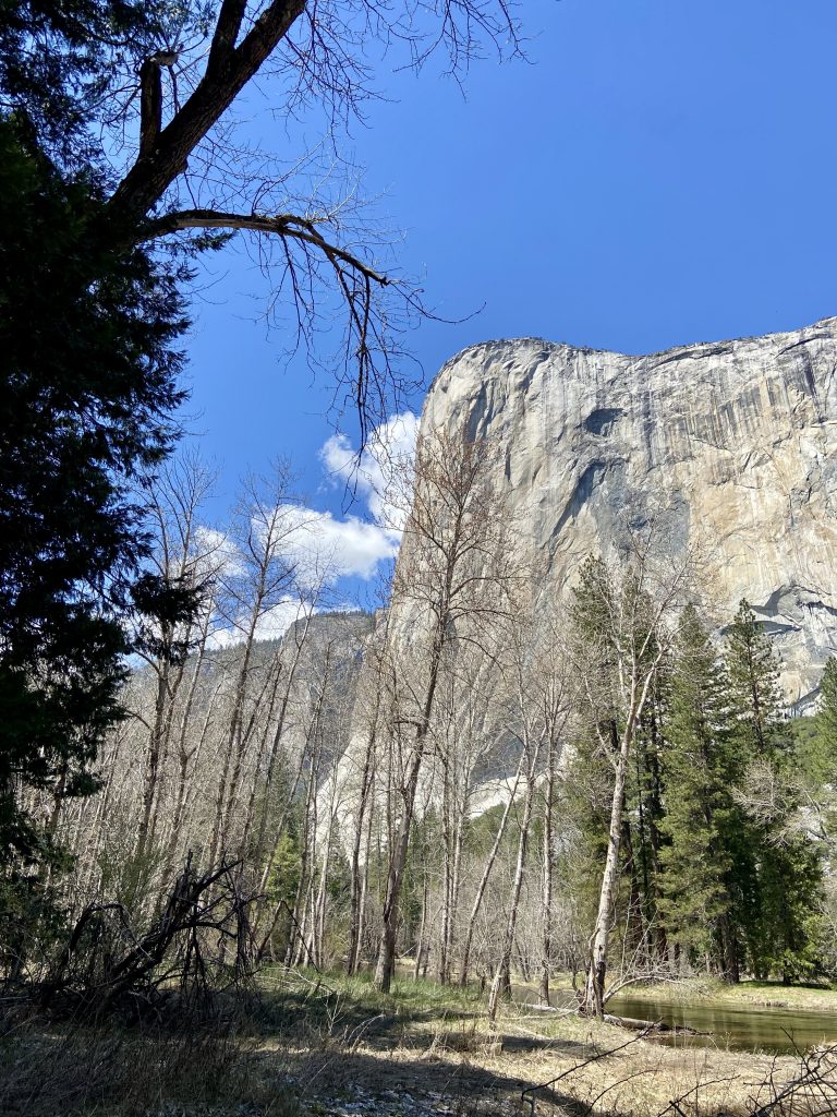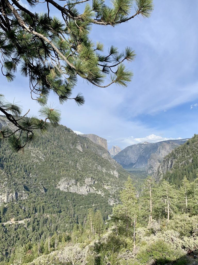 Le parc national de Yosemite est très fréquenté, en toutes saisons. C’est un espace naturel protégé de plus de 3000 kms carrés, une seule route traverse le parc, la Tioga road mais à l’époque où nous nous trouvons, elle est fermée car encore enneigée.