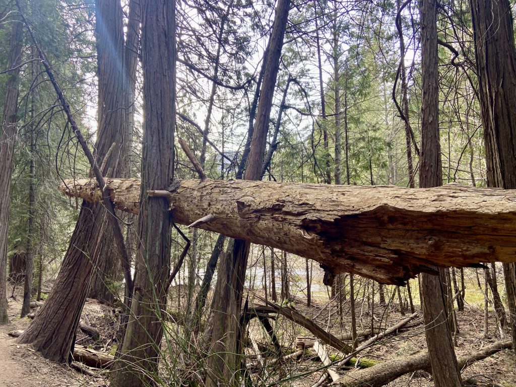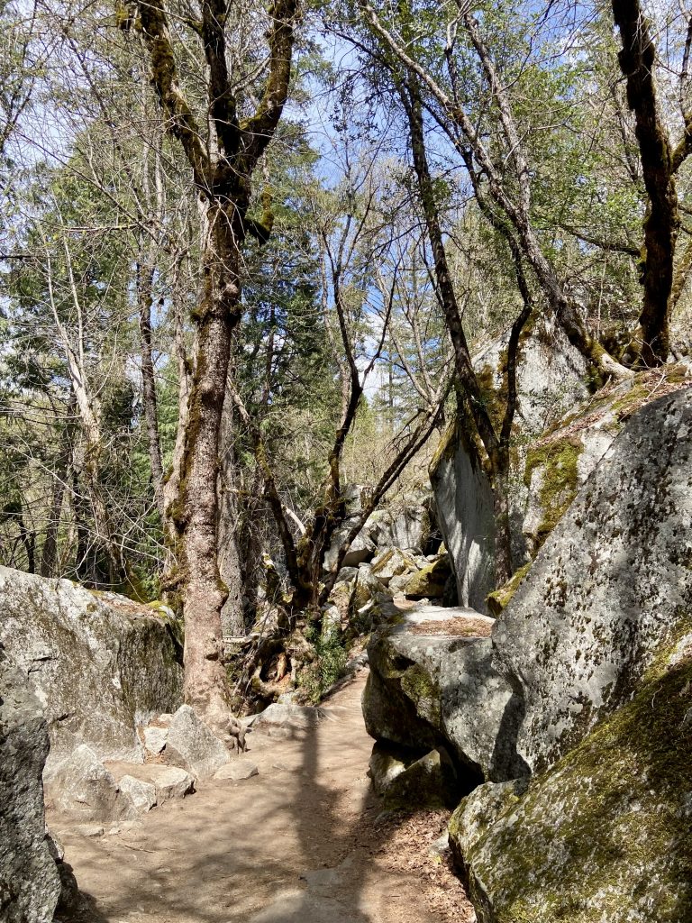 Les séquoias géants de Yosemite se trouvent du côté de Mariposa’s Grove, une randonnée permet d’aller les admirer. On grimpe 2,5 miles avec un dénivelé de 250 mètres, c’est un peu raide mais ça vaut vraiment le coup. En haut, on peut admirer de beaux spécimens de séquoias géants comme le « Grizzly Giant » ou le « California tunnel tree ». Le sentier est bien aménagé et on apprend plein de choses sur les séquoias et notamment le feu maitrisé.