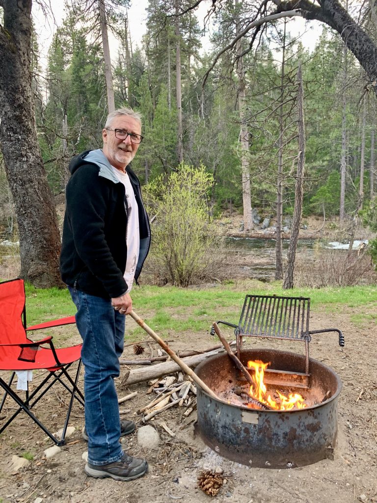 Le camping est nature, on est en bord de rivière. Chaque emplacement est équipé d’une table de piquenique et d’un « bear locker », coffre métallique pour sécuriser nourriture, déchets et même affaires de toilette contre les ours. On y trouve évidemment aussi un barbecue à feu de camp. On peut donc ramasser du bois et faire du feu le soir pour se réchauffer. Trop froid pour le moment pour un vrai barbecue.